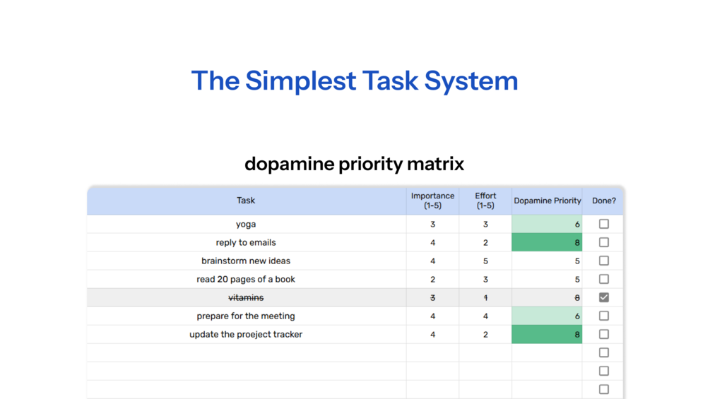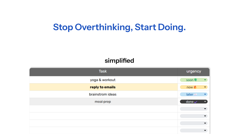 Traditional task managers are too complex. We don't need more features. We just need a simple and easy system to get us started.
